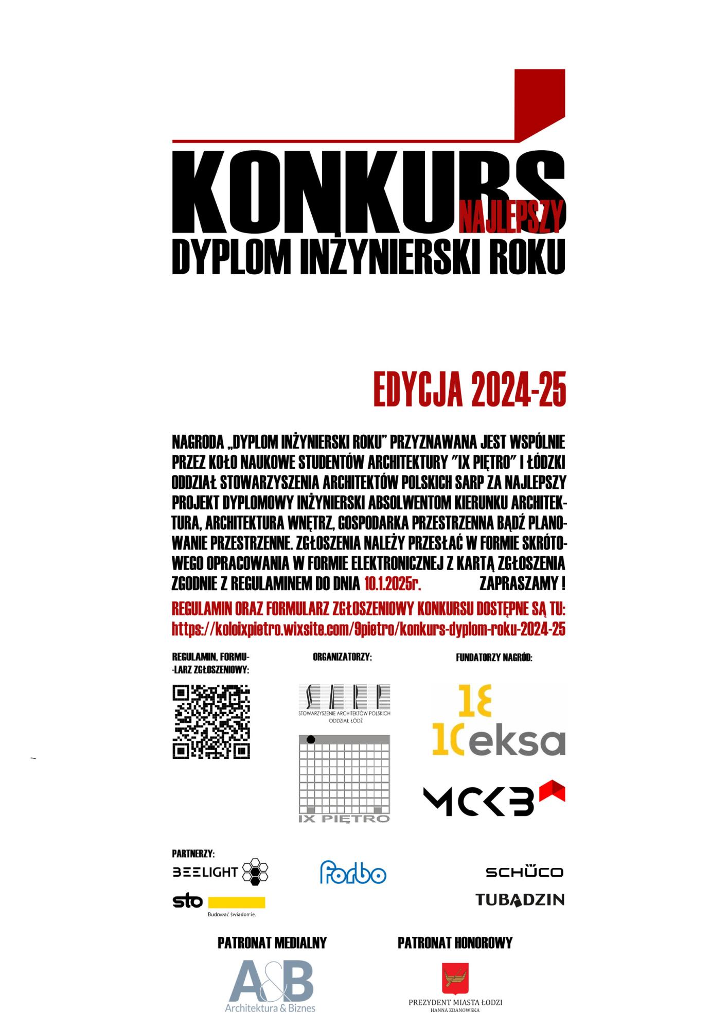 Nagroda „Najlepszy Dyplom Inżynierski Roku” przyznawana jest wspólnie przez Koło Naukowe Studentów Architektury „IX Piętro” oraz Łódzki Oddział Stowarzyszenia Architektów Polskich SARP za najlepszy projekt dyplomowy inżynierski absolwentowi kierunków: architektura (w tym ze ścieżką kształcenia architektura wnętrz), gospodarka przestrzenna bądź planowanie przestrzenne, realizowanych na Uczelniach znajdujących się na terenie Łodzi.